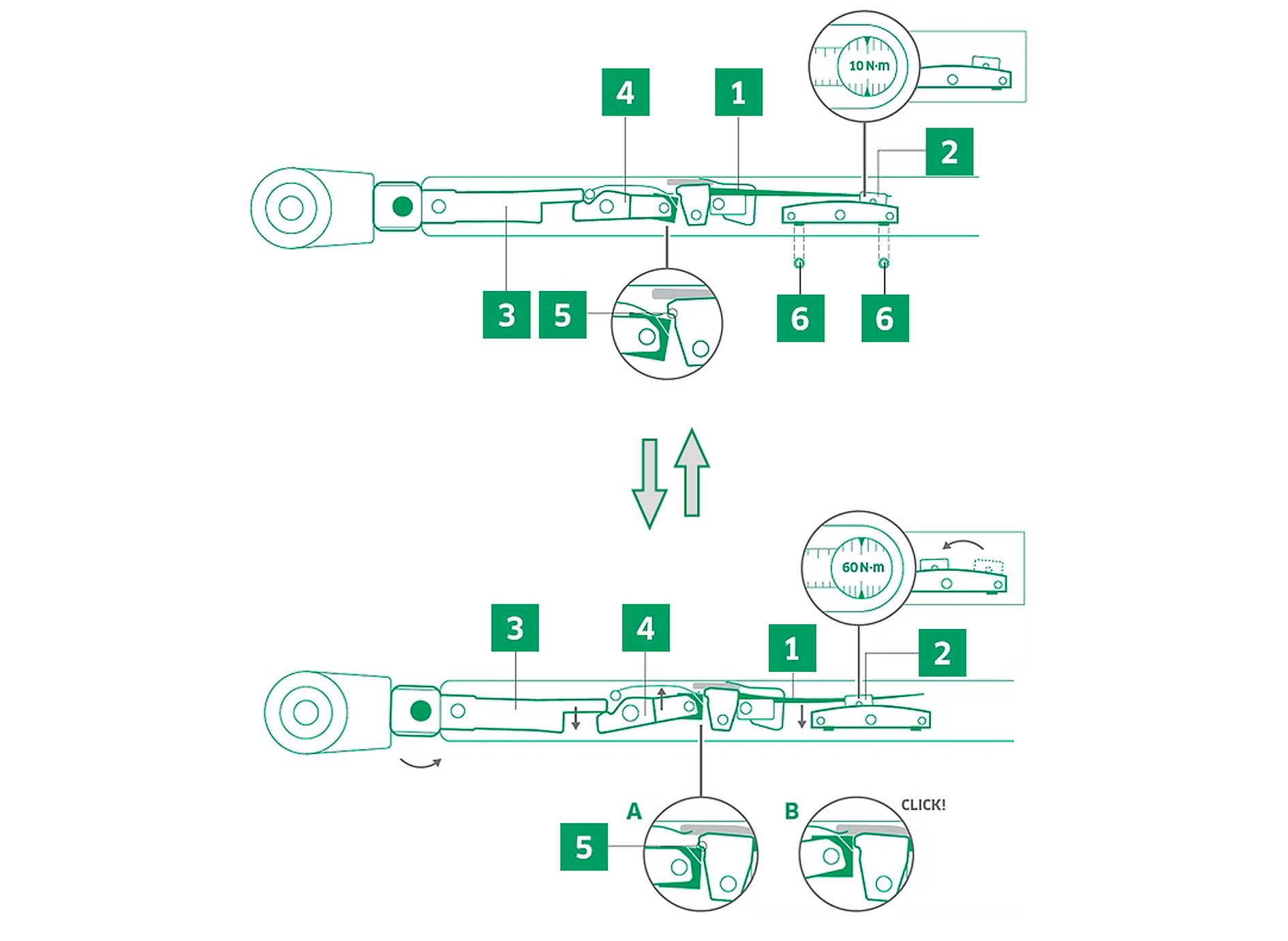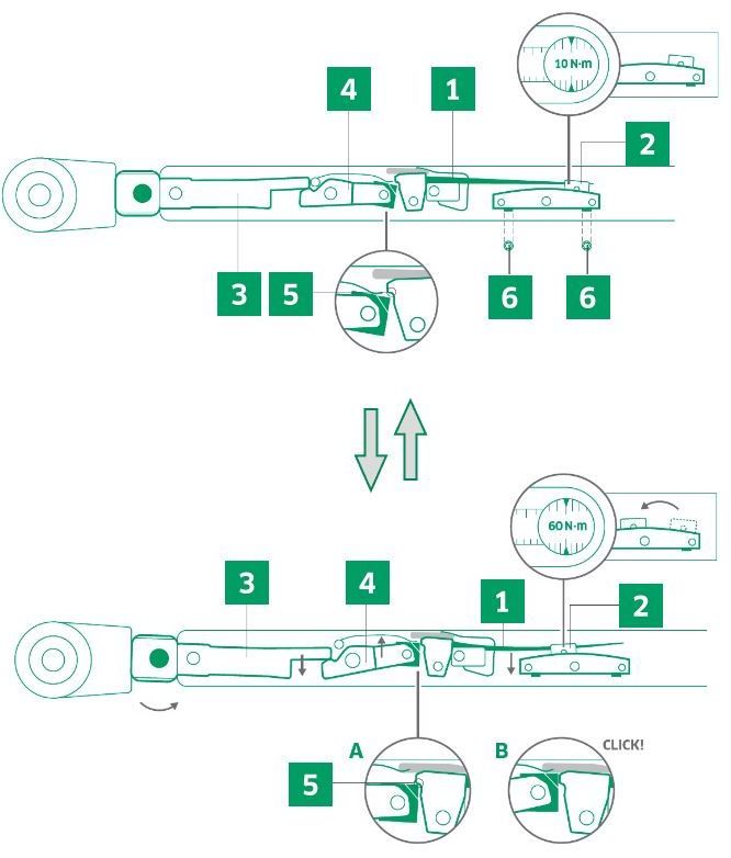 Практически не подверженная износу система с гибким стержнем. В отличие от обычных моментных ключей, она не требует сброса на «0» для разгрузки пружины.