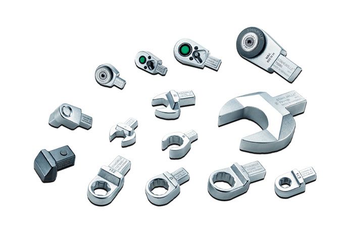 Широкое разнообразие сменного инструмента Stahlwille с наружным четырехгранным хвостовиком размером 9x12 мм, 14x18 мм и 22x28 мм, а также – сменного инструмента с внутренним четырехгранником 24,5x28 мм.