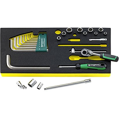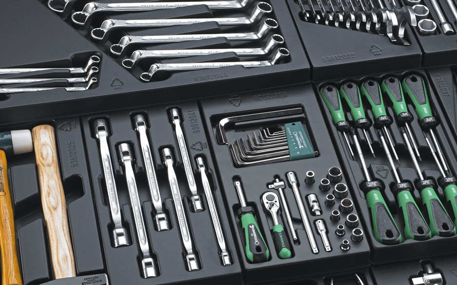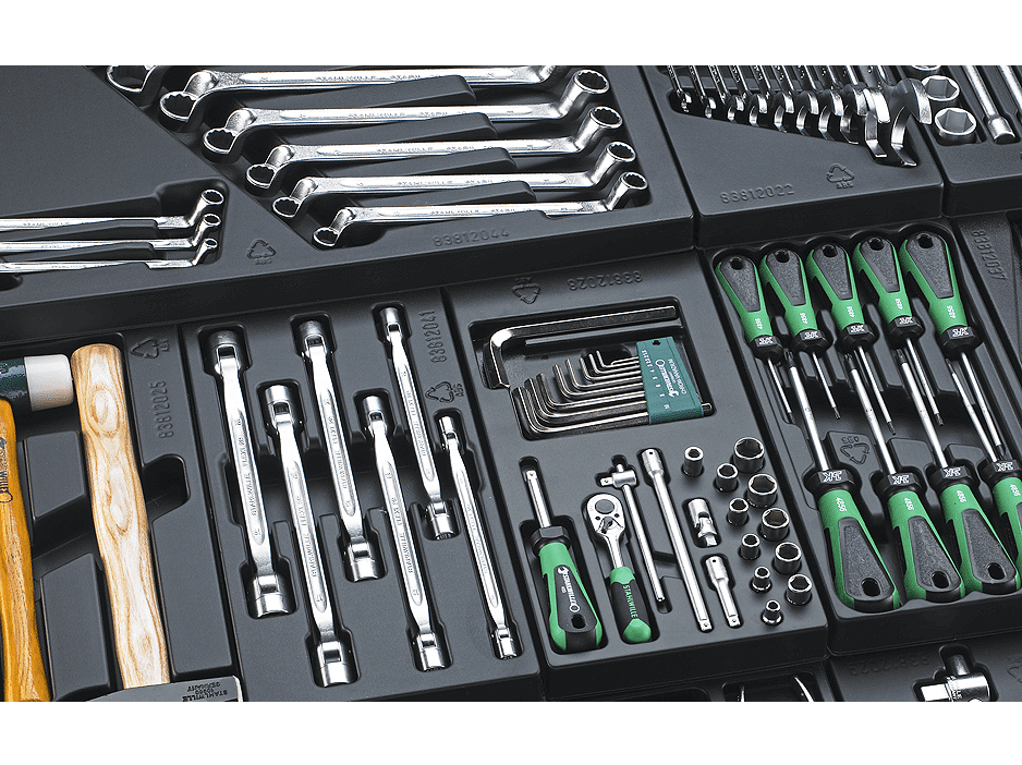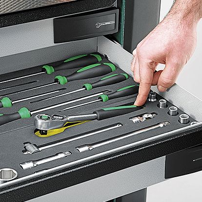 Особенно видны преимущества системы вкладышей для инструментов STAHLWILLE в эффективности и качестве работы там, где постоянно используется много инструментов, которые должны быть легкодоступны. Различными комбинациями и дополнительными вкладышами можно добиться оптимального использования ящиков. Масло- и скидролостойкие пластмассовые вкладыши с дополнительными отделениями защищают инструменты от повреждений.