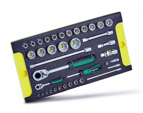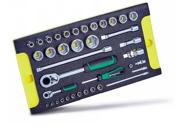 Для проверки комплектности инструмента по окончанию работ достаточно одного взгляда - желтый сигнальный цвет означает, что инструмент не вернули назад. Эта инвестиция оправдывается в самые короткие сроки.